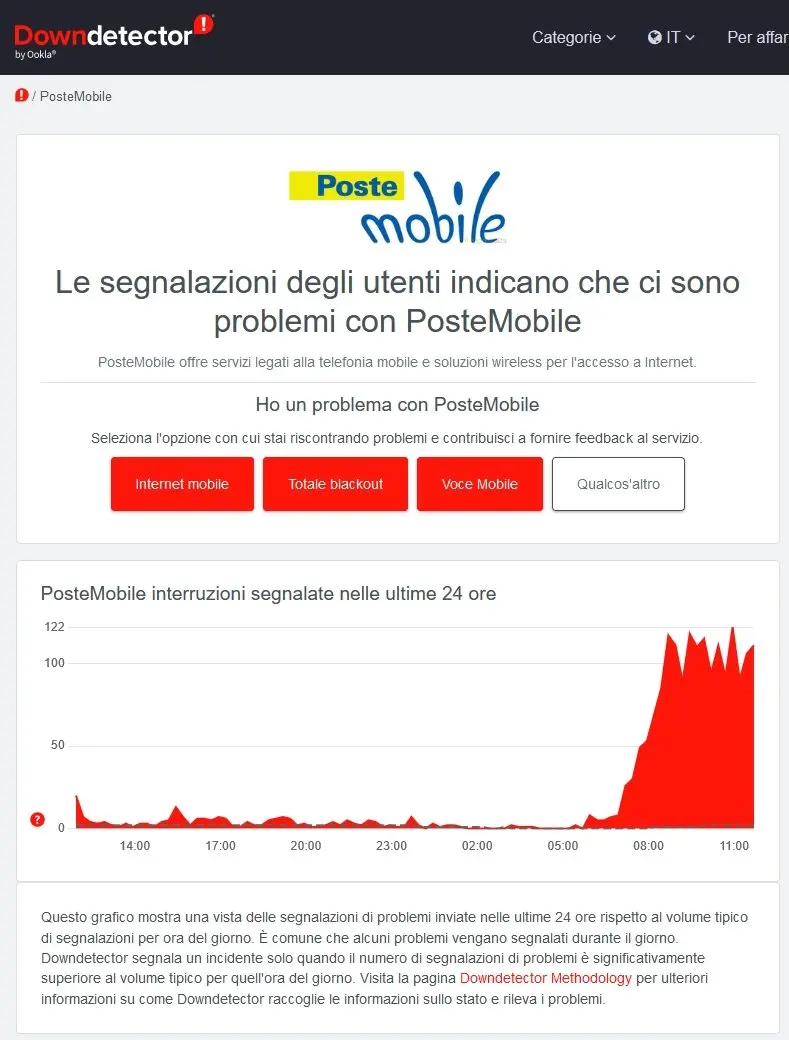 Numerosi utenti hanno segnalato difficoltà nel effettuare chiamate, inviare messaggi e accedere a Internet. Questi problemi sono stati più evidenti in diverse città italiane tra cui Roma, Milano e Napoli, dove molti hanno riferito che i servizi sono completamente assenti o estremamente lenti. La situazione è iniziata il 20 ottobre 2023, quando si sono verificati i primi segnali di interruzioni. In risposta a queste segnalazioni, Postemobile ha dichiarato di essere a conoscenza delle problematiche e di essere al lavoro per ripristinare i servizi al più presto.